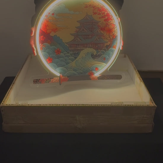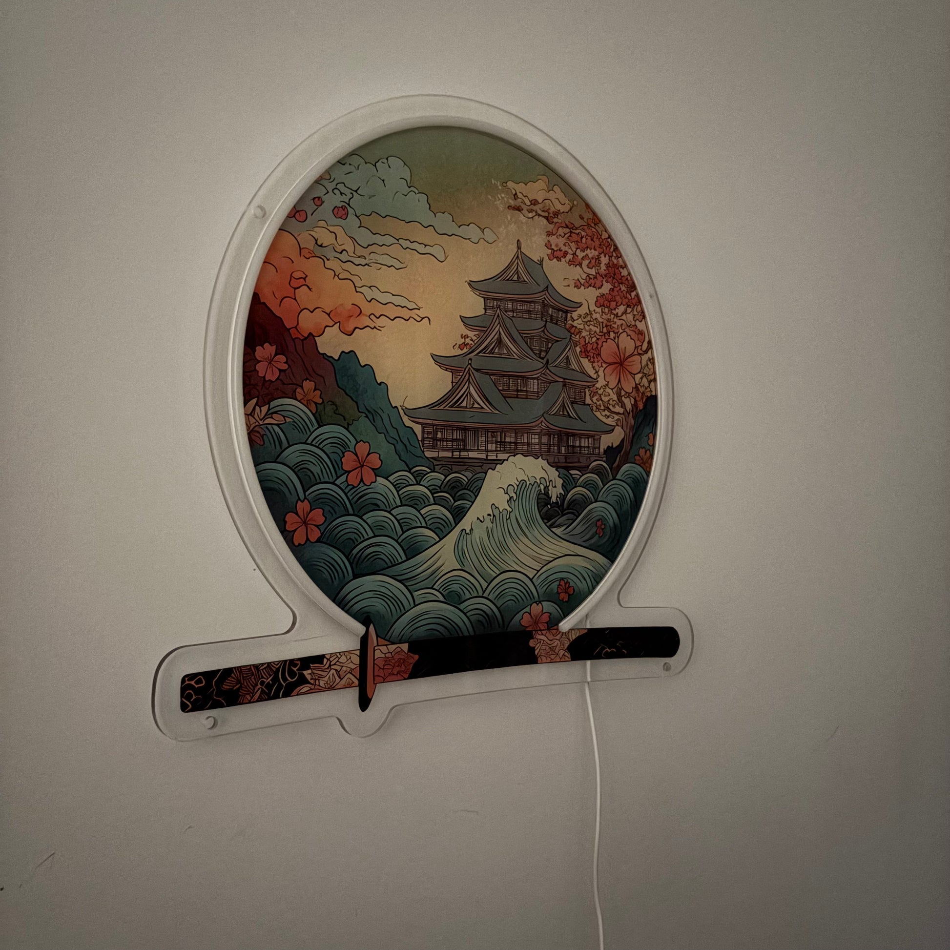 Château japonais — inspiration Ukiyo-e | Art mural néon LED