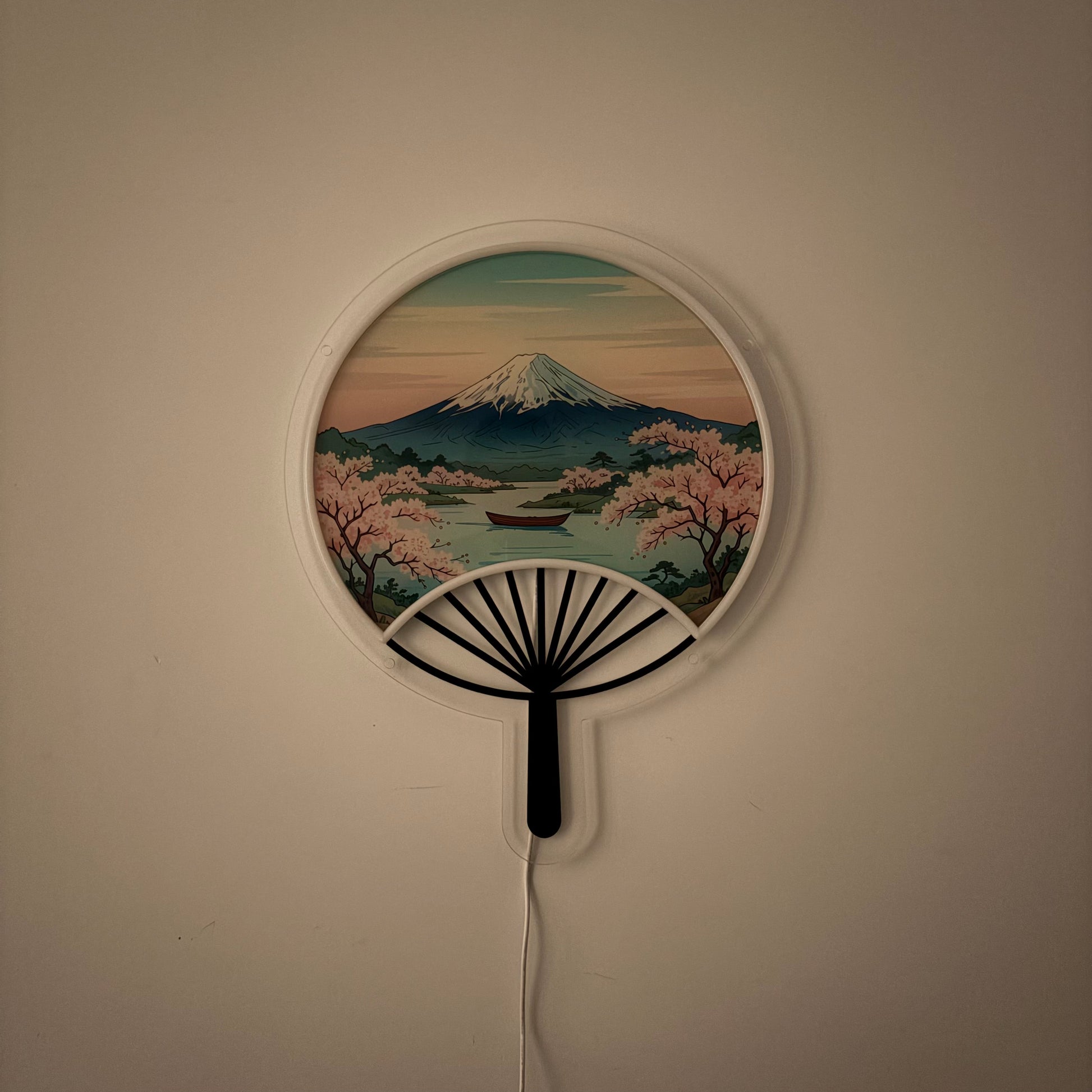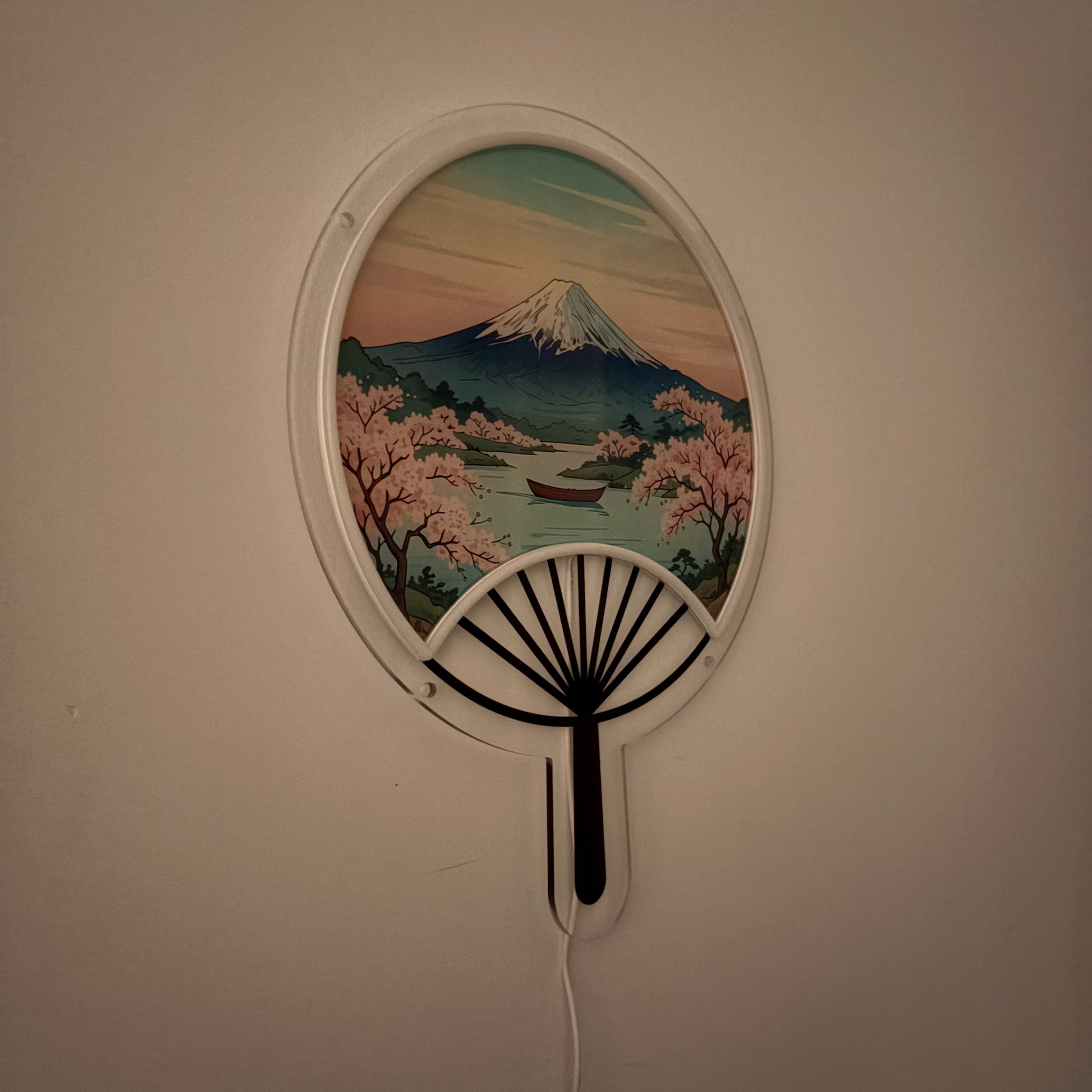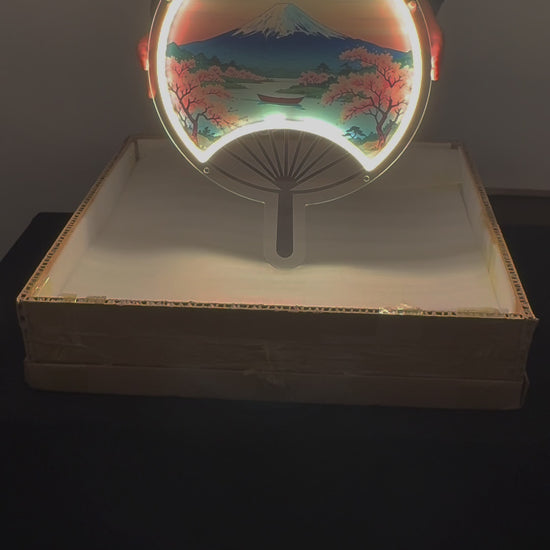 Éventail japonais Mont Fuji inspiré Ukiyo-e / Art mural néon LED