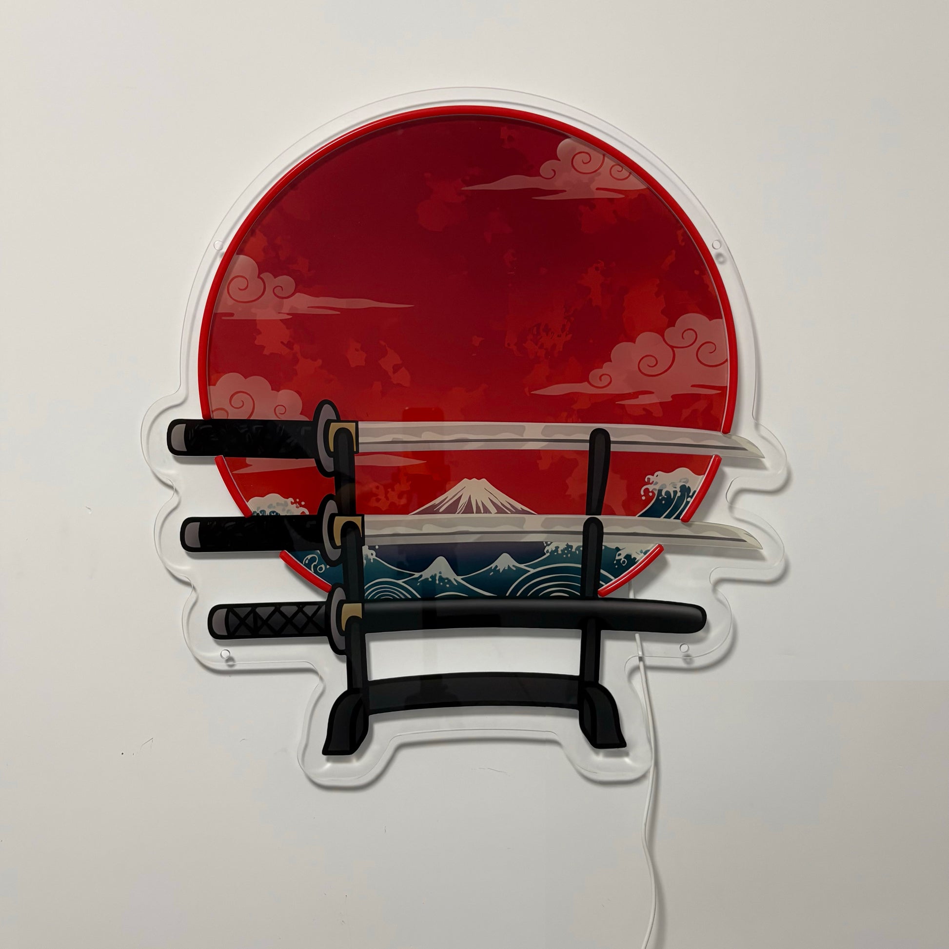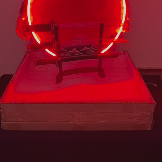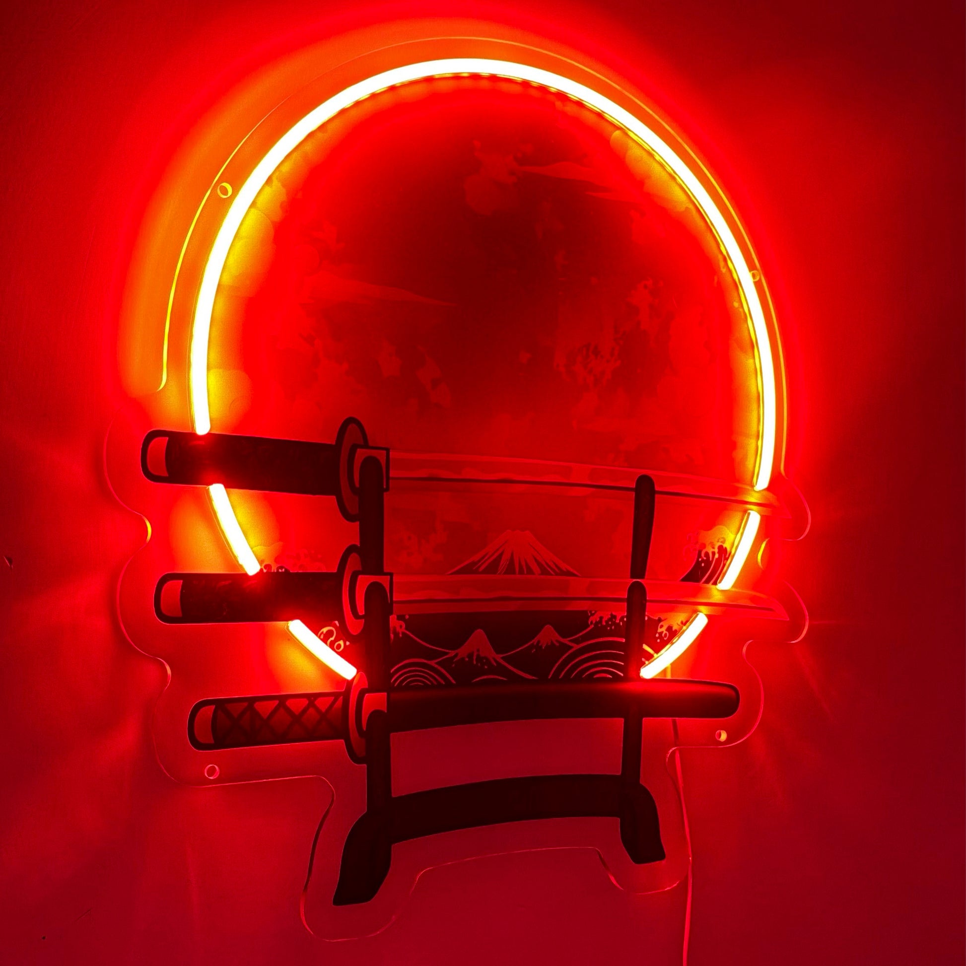 Casque de samouraï inspiré Ukiyo-e / Art mural néon LED
