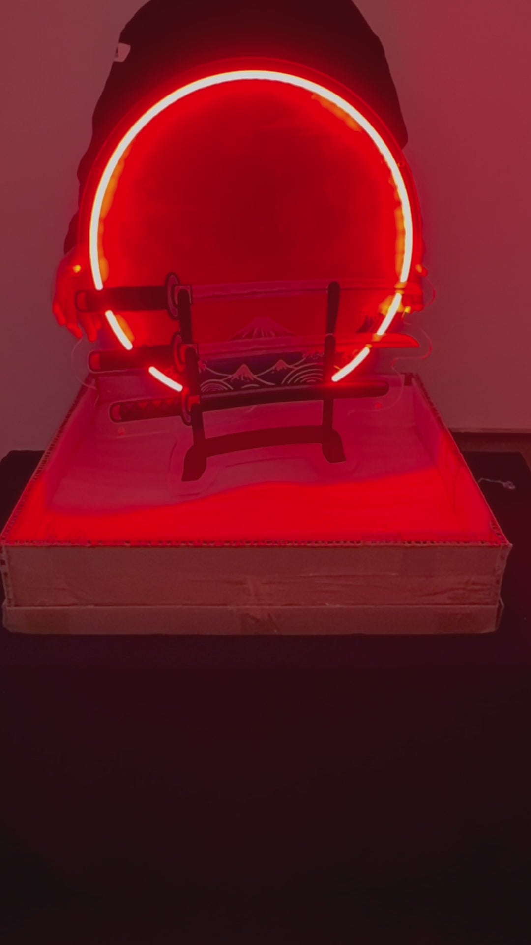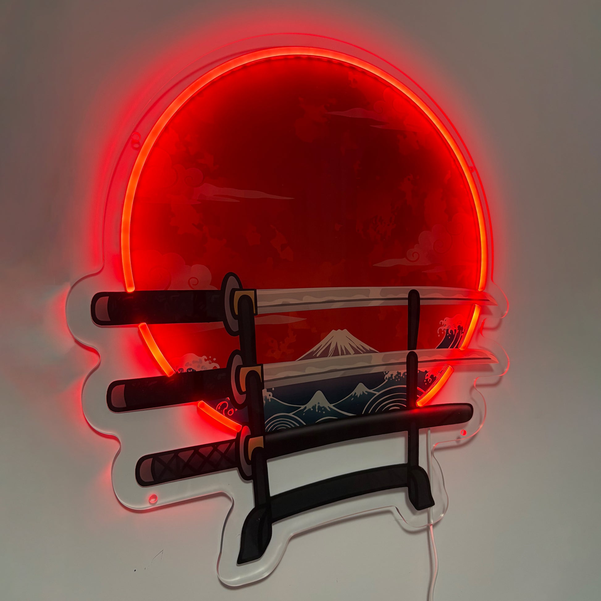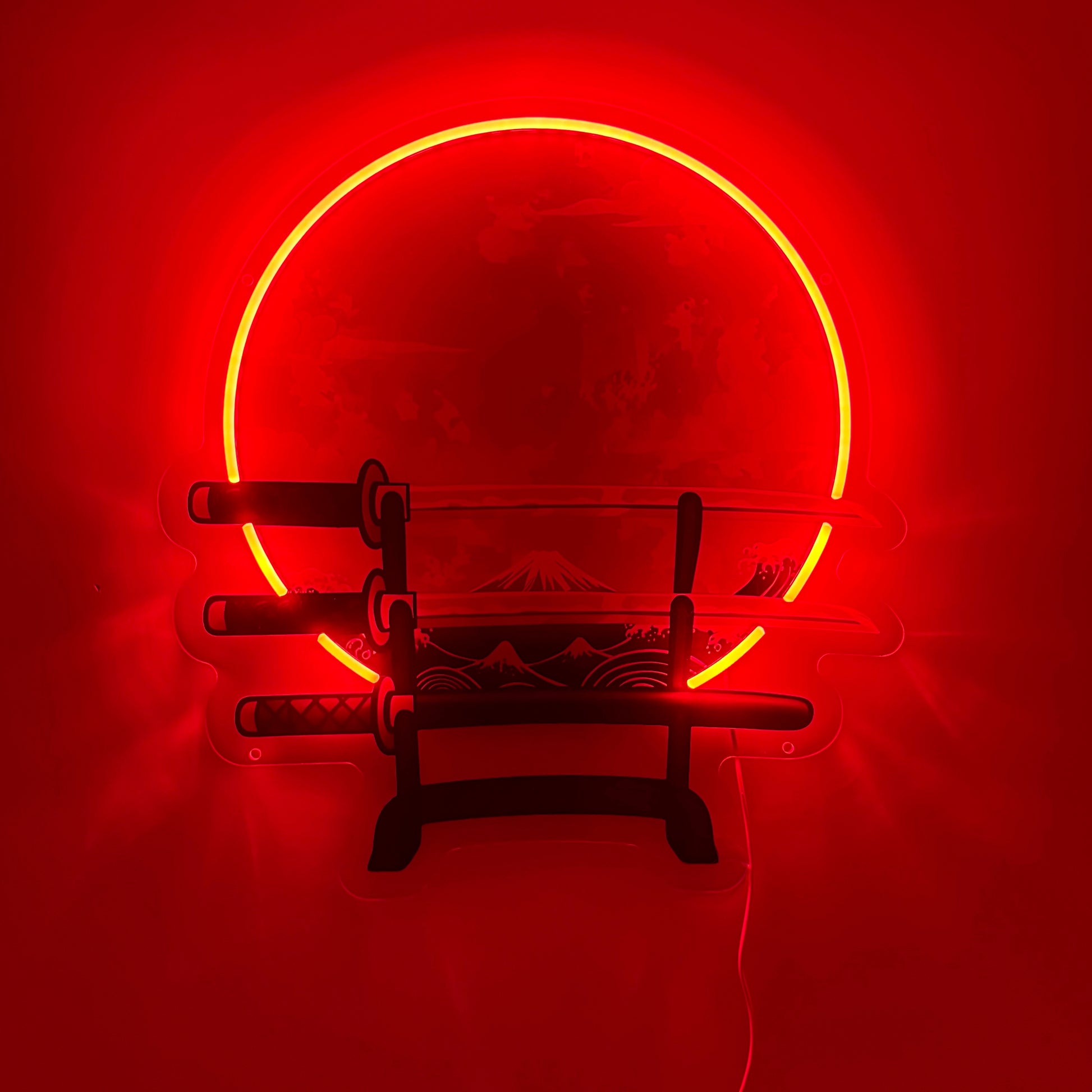 Casque de samouraï inspiré Ukiyo-e / Art mural néon LED